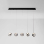 Nowoczesna lampa wisząca Chepen 5 składa się z listwy sufitowej oraz pięciu kloszy o nieregularnej formie, które nadają całości oryginalności i dynamizmu. Metalowa lampa wisząca Chepen 5 na listwie doskonale odnajdzie się nie tylko w typowo nowoczesnych aranżacjach, ale także we wnętrzach inspirowanych stylem loftowym, szczególnie, jeśli zestawisz ją z innymi metalowymi elementami wyposażenia w czarnym kolorze. Lampa wisząca na listwie Chepen 5 sprawdzi się między innymi w roli nowoczesnego żyrandola do jadalni, pięknie prezentując się nad stołem.