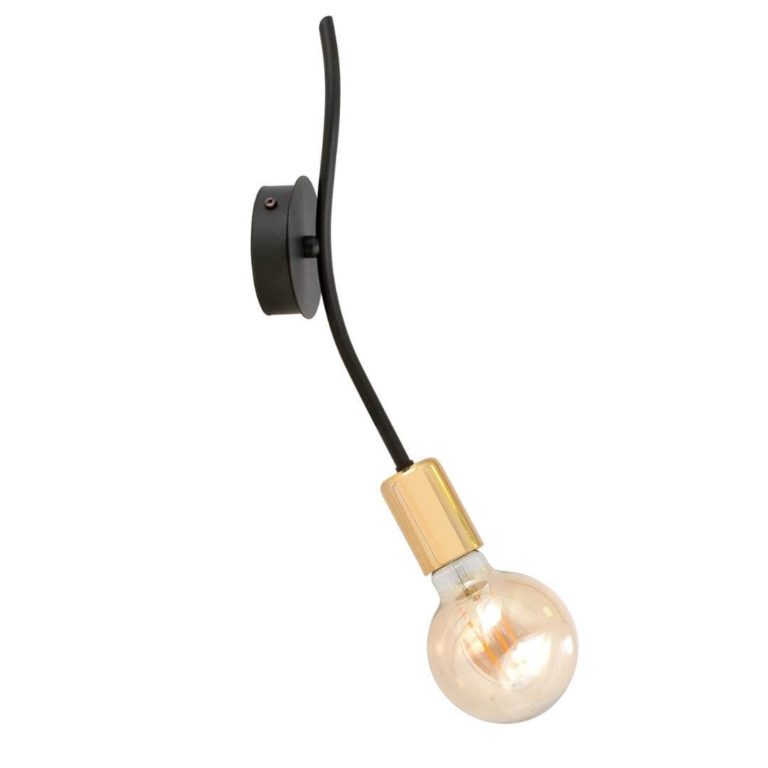 Industrialny kinkiet do sypialni Otis ma charakterystyczny dla tego nurtu, czarny kolor. Doskonale pasuje on do innych elementów, znajdujących się w tego rodzaju przestrzeni – na przykład do metalowych mebli, surowej cegły, czy betonu. Oświetlenie to wyposażone jest dodatkowo w złoty akcent w postaci oprawki na źródło światła. Jeśli chcesz nadać wystrojowi jeszcze bardziej industrialnego charakteru, rekomendujemy wybranie dekoracyjnej żarówki w stylu retro. Ekonomicznym i ekologicznym rozwiązaniem będzie oświetlenie LED.