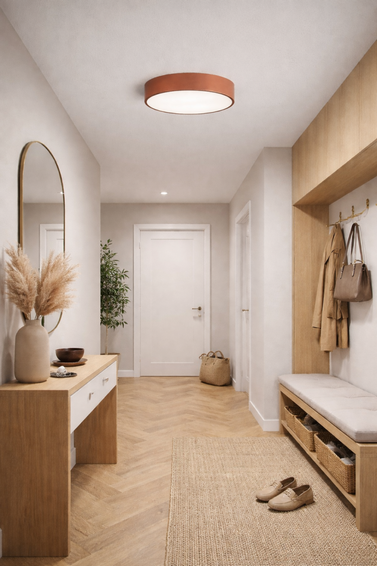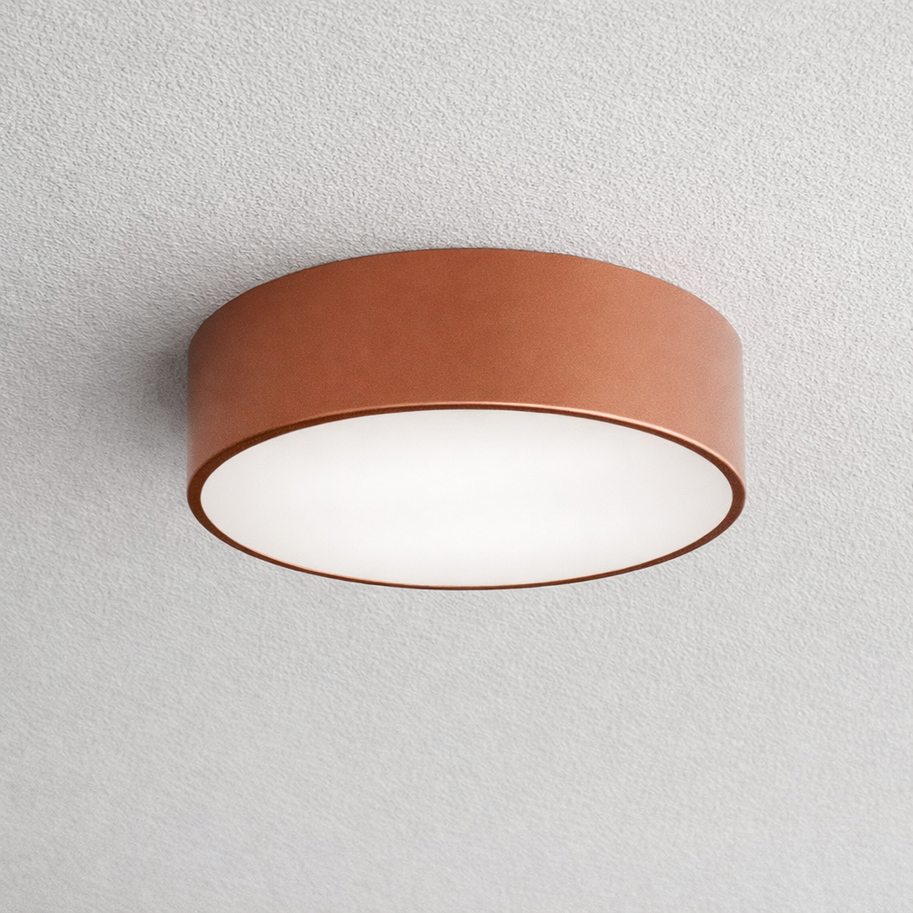 Nowatorska konstrukcja plafonu minimalizuje ilość światła, które wydostaje się spod lampy, dzięki czemu na suficie tworzy się przyjemna dla oka poświata. Lampa sufitowa do salonu Newa wyróżnia się również podwójnym zastosowaniem – możesz ją zamontować także na ścianie. To rozwiązanie sprawia, że jest to wyjątkowo uniwersalne oświetlenie, które można wykorzystać, chociażby w roli lampki nocnej przy łóżku w sypialni. Dodatkowo miedziana barwa oprawy sprawia, że Newa bardzo dobrze łączy się z różnymi aranżacji.