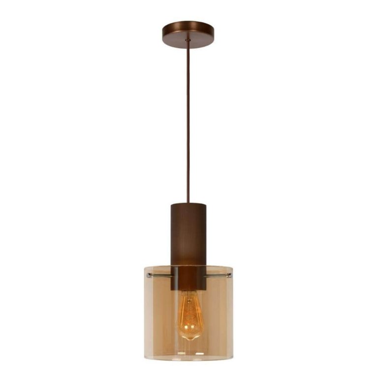 Jak dokładnie wygląda oferowany projekt? Model Toledo ma postać pojedynczej lampy wiszącej, której maskownica i oprawka na żarówkę wykonane są z aluminium w kolorze miedzianym. Źródło światła osłania szklany klosz w kształcie tuby w bursztynowym odcieniu. Ciepła kolorystyka całości wprowadza do wnętrze przytulną atmosferę, a prosta forma nadaje lampie do kuchni Toledo uniwersalnego zastosowania.
