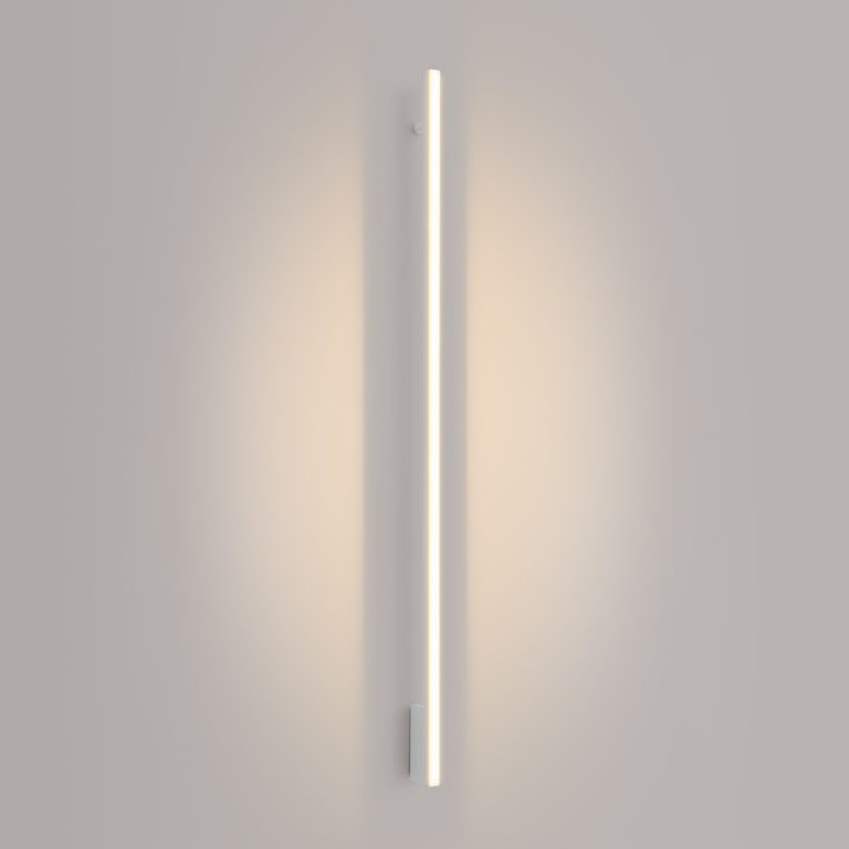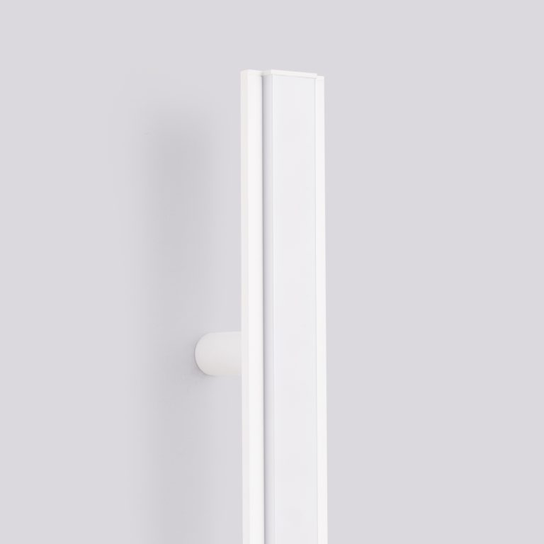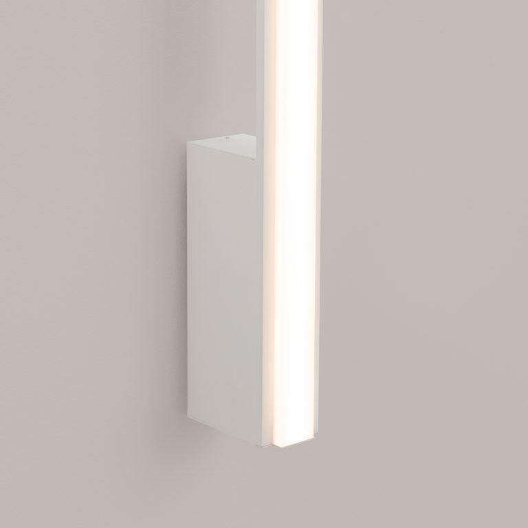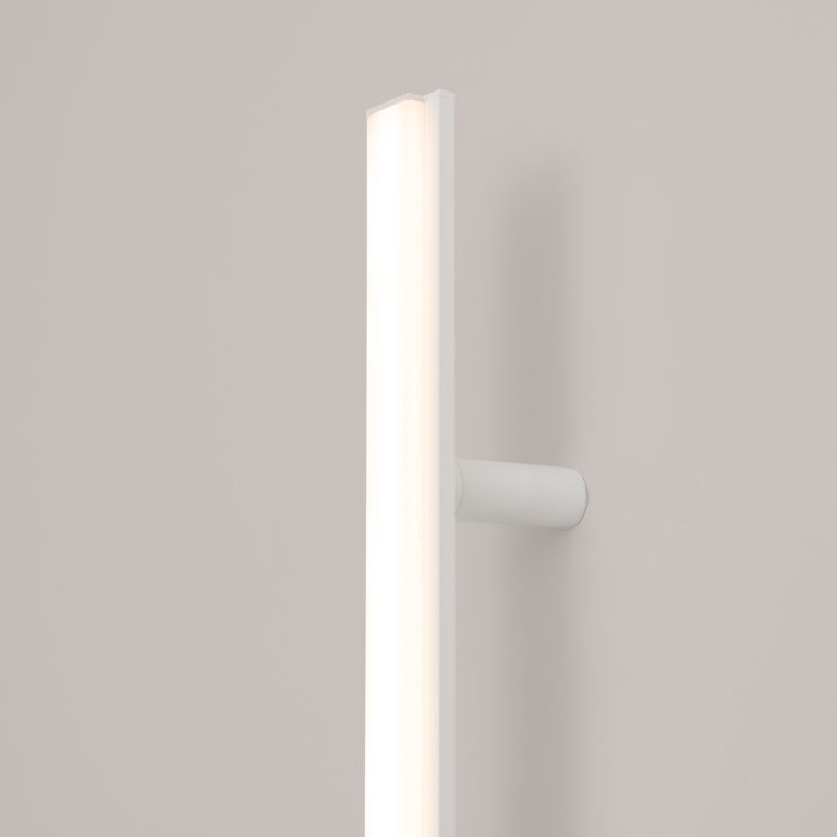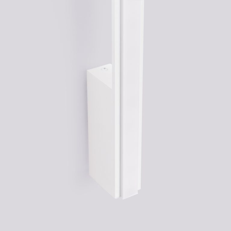 Kinkiet Lagom wyróżnia się geometryczną, a zarazem lekką formą. Model wyposażony jest w podłużny klosz oraz subtelne mocowanie, które jednocześnie zapewnia stabilność całości. Wszystkie elementy konstrukcji wykonane zostały z wysokiej jakości aluminium o białym wykończeniu. Kolorystyka oprawy podkreśla jej minimalistyczny charakter, a także doskonale wkomponowuje się zarówno jaśniejsze, jak i ciemniejsze aranżacje.