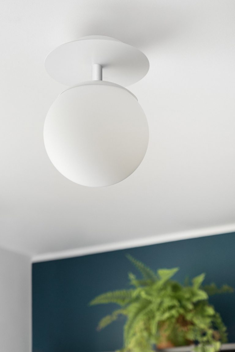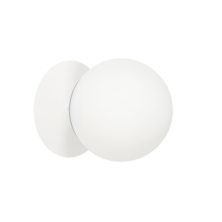 Biały kinkiet ścienny PLAAT C posiada doskonale opracowaną formę i proporcje. Lampa nie ma żadnych zbędnych dodatków – jest kształtna i sprawia wrażenie lekkiej. Zbudowana jest z dwóch głównych elementów: metalowego stelaża i szklanego klosza. Wykonanie minimalistycznej lampy ściennej PLAAT C jest bezkompromisowe. Jest produkt wysokiej jakości, zrobiony z najlepszej klasy metalu i szkła. Stelaż oferowanego model wykonany jest z pomalowanego na biało metalu, posiada kształt koła o średnicy 20 cm. Identyczny wymiar ma mlecznobiały klosz, którego szkło posiada właściwość rozpraszania światła, aby było ono przyjemne dla oczu.