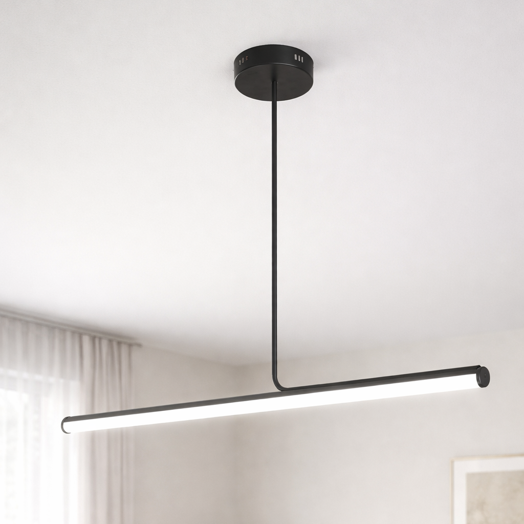 Model składa się z dwóch głównych elementów, które idealnie ze sobą harmonizują: podłużnego klosza w formie panelu świetlnego oraz stalowego stelaża w czarnym kolorze. Minimalistyczna lampa sufitowa LED Lynn znakomicie wpisuje się w we współczesne trendy wnętrzarskie. Czarna kolorystyka nie tylko podkreśla jej nowoczesny charakter, ale także z łatwością wkomponowuje się w pozostałe elementy wyposażenia. Aby nadać aranżacji harmonii, zestaw oprawę z innymi dodatkami w czarnym kolorze.