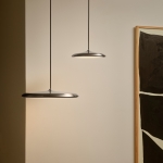 Głównym elementem modelu jest płaski, okrągły klosz o miękkich krawędziach, który zwisa na przewodzie pod minimalistyczną podsufitką – całość tworzy zbalansowaną, przyjemną dla oka kompozycję. Lampa wisząca Artist LED dostępna jest w dwóch rozmiarach, co pozwala łatwo dopasować ją do specyfiki danego wnętrza. Świetnie prezentuje się zarówno solo, jak i w grupie z kilkoma egzemplarzami – także o różnych wielkościach. Możesz wykorzystać ją do oświetlenia niemal każdego miejsca w swoim domu, jak chociażby stół w jadalni, wyspa w kuchni, ale też strefa relaksu w salonie, czy okolica łóżka w sypialni.