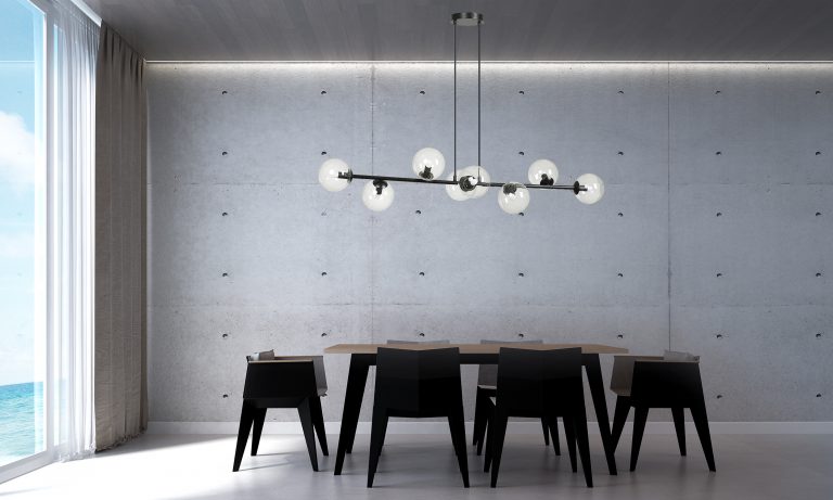 Gdzie najlepiej sprawdzi się ten futurystyczny model? My wyobrażamy go sobie w industrialnej jadalni tuż nad betonowym lub szklanym stołem. Pięknie będzie wyglądała również w towarzystwie dużych okien, w salonie nad nowoczesnym kompletem wypoczynkowym.