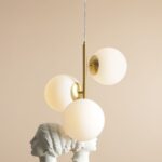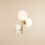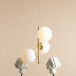 Mosiężny żyrandol Flott M wyposażony jest w wyjątkowo modne w ostatnich latach klosze w formie kul, które wykonano z pięknego mlecznobiałego szkła. To właśnie dzięki nim emitowane światło rozprasza się po całym wnętrzu, dając przyjemny dla oka blask. Lampa wisząca w nowoczesnym stylu Flott M to również metalowy stelaż w mosiężnym odcieniu, który perfekcyjnie harmonizuje z bielą kloszy. Polecane przez nasz sklep oświetlenie szczególnie dobrze współgra z eleganckimi aranżacjami – na przykład w stylu glamour.