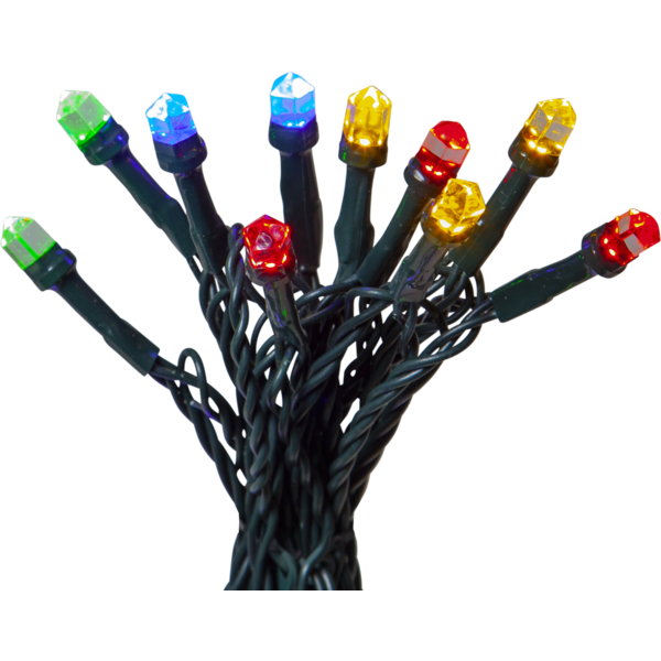 Multikolorowe lampki choinkowe z timerem 1500 cm wyposażone są w 200 diod LED w kształcie małych diamentów. Światełka emitują różnobarwne światło roztaczając wokół siebie radosną świąteczną atmosferę. Oferowane lampki choinkowe LED mogą posłużyć Ci nie tylko do przystrojenia drzewka bożonarodzeniowego, ale również wielu innych miejsc – na przykład okna lub balustrady.