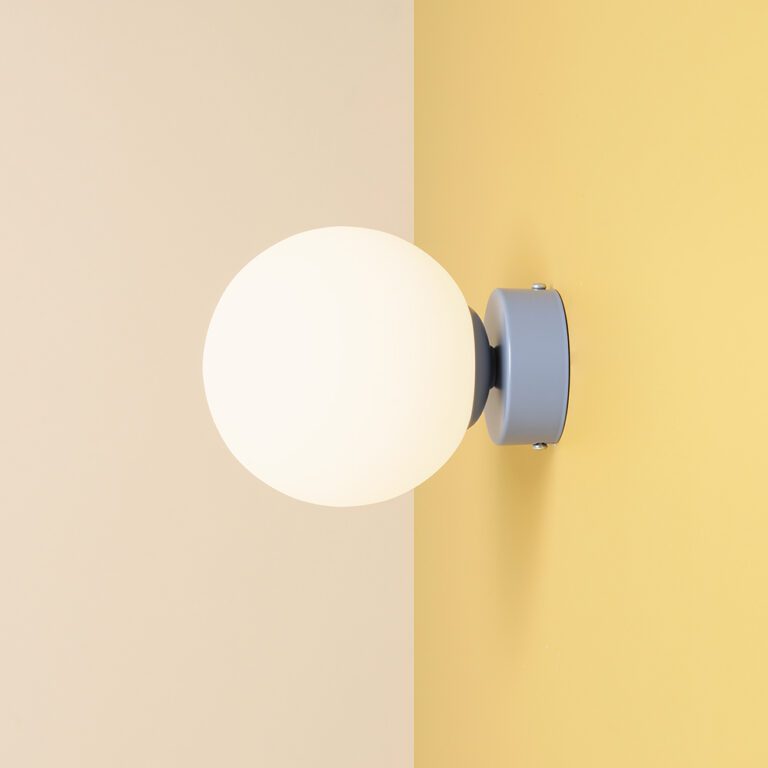 Kolorowa lampa ścienna Bram S do strefy wypoczynku składa się z dwóch głównych części, które idealnie ze sobą harmonizują: niebieskiego stelaża wykonanego z metalu oraz mlecznobiałego szklanego klosza. To zestawienie barw nie tylko sprzyja odprężeniu, ale również jest ponadczasowe, dzięki czemu Twoja aranżacja opierać się będzie szybko zmieniającym się trendom!