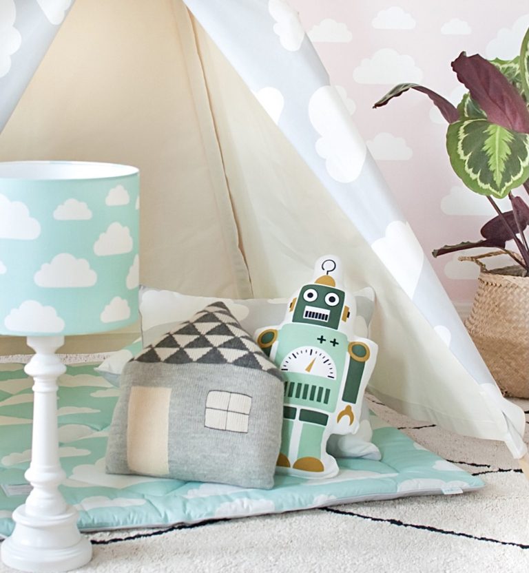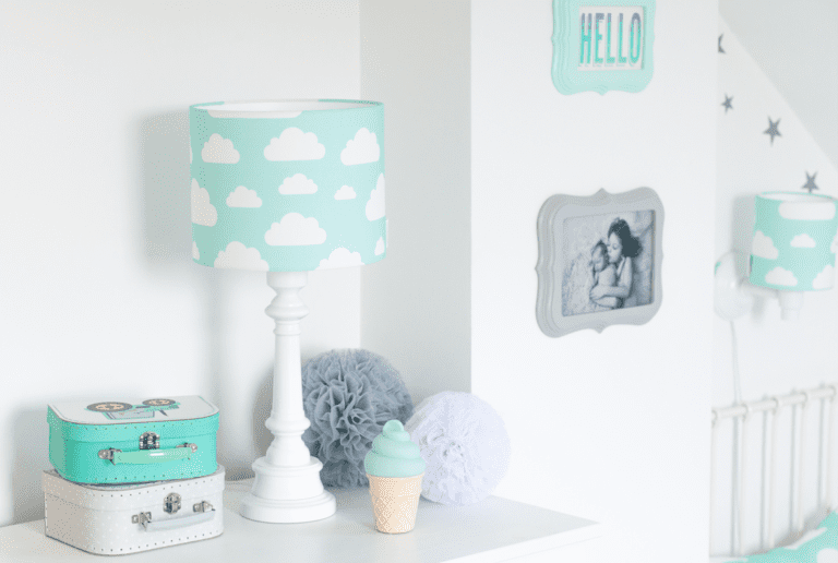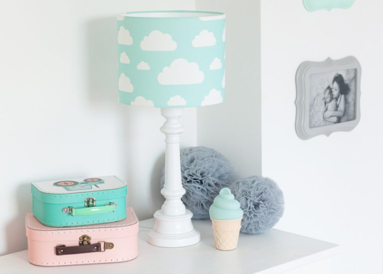 Niebieska lampka nocna Clouds z unikatowym wzorem
