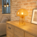 Dostępna w naszym sklepie z oświetleniem nietypowa lampa stołowa w kształcie grzybka Fungo od razu przyciąga do siebie uwagę. Oprawa wykonana została ze szkła o przepięknym bursztynowym odcieniu, który ociepli każdą aranżację. W połączeniu z oryginalną formą, całość prezentuje się nadzwyczaj efektownie! Lampa stołowa pomarańczowa Fungo idealnie pasuje do aranżacji w stylu industrialnym i loftowym, ale może stać się także nietypową dekoracją wnętrz nowoczesnych, skandynawskich i wielu innych!