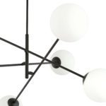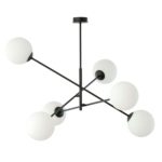 Lampa sufitowa Frix 6 wyposażona jest w aż sześć źródeł światła, dzięki czemu doskonale sprawdza się, jako zamiennik klasycznego żyrandola. To propozycja dla wszystkich miłośników nowoczesnej stylistyki, która charakteryzuje się funkcjonalnością, ale i nie boi się designerskich, oryginalnych dodatków. Oferowany model idealnie nadaje się do średnich i większych pomieszczeń. Jego wysokość mierzy dokładnie 51 cm, a szerokość 102 cm. Wszystkie klosze mają identyczną średnicę 15 cm.