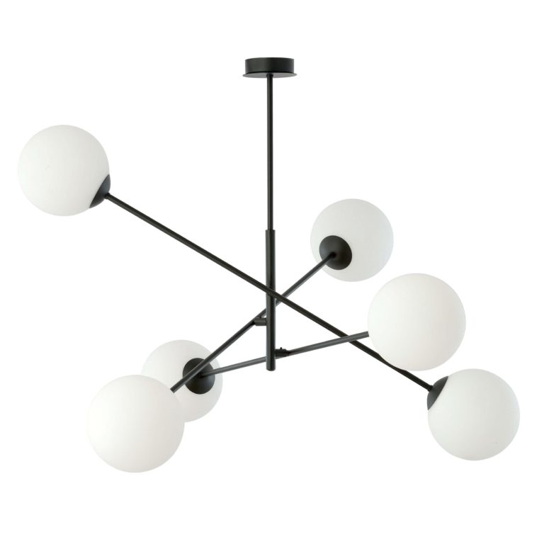 Nie tylko wyjątkowa forma i funkcjonalność. Oferowany model to także elegancka dekoracja, która wyróżnia się klasycznymi kolorami. Białe klosze pięknie rozpraszają światło i doskonale kontrastują ze stalowym stelażem lakierowanym na czarno. Obie barwy idealnie pasują do wielu nowoczesnych aranżacji. Czarna lampa sufitowa z białymi kloszami Frix 6 świetnie współgra, chociażby ze stylistyką minimalistyczną.