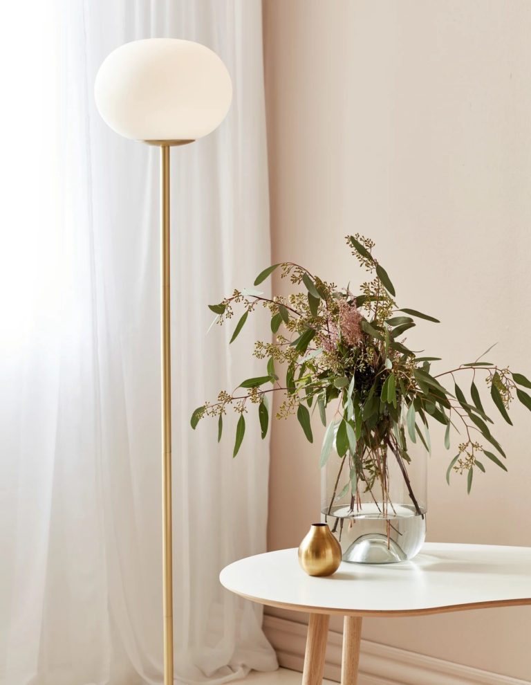 Nowoczesna lampa podłogowa Alton ze szklanym kloszem