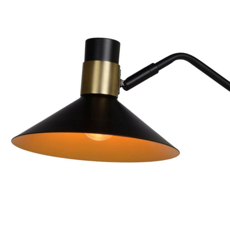 Lampa podłogowa w stylu nowoczesnym Pepijn w całości wykonana jest ze stali, dlatego wyróżnia ją wyjątkowa solidność i trwałość. Nowoczesny design oferowanego modelu to nietypowo wygięty stelaż na okrągłej podstawie oraz rozszerzający się klosz, inspirowany industrialną stylistyką. Niemal cała lampa stojąca do biura Pepijn ma czarny kolor. Urozmaiceniem są jedynie złote detale, dzięki którym opisywany model jeszcze bardziej zyskuje na elegancji.