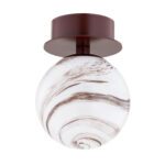 Polecana przez nasz sklep nowoczesna lampa ścienna kula Fabio zwraca na siebie uwagę elegancką formą i nietypową kolorystyką. Kinkiet Fabio składa się z mocowania wykonanego ze stali lakierowanej na kolor czekoladowego brązu oraz ze szklanego kulistego klosza ozdobionego biało-brązowym motywem marmur. Lampa ścienna w nowoczesnym stylu Fabio doskonale komponuje się z wieloma współczesnymi trendami wnętrzarskimi, szczególnie, jeśli w aranżacji znajdą się również inne elementy wyposażenia w podobnej tonacji kolorystycznej.
