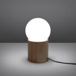 Nowoczesna lampa stołowa Funi na drewnianej nodze ma niewielkie rozmiary, dlatego z łatwością znajdziesz dla niej miejsce nawet na małym biurku, stoliku nocnym, półce, czy parapcie. Prezentowana lampa do biura wyposażona jest w biały szklany klosz w kształcie kuli, który bardzo dobrze rozprasza światło. Klosz doskonale komponuje się z podstawą w naturalnym kolorze. Nowoczesna lampa stołowa na drewnianej nodze znakomicie pasuje do wnętrz nowoczesnych i skandynawskich.