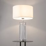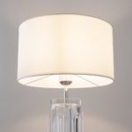 Nowoczesny design w połączeniu z neutralną kolorystyką pozwala na łatwe dopasowanie oferowanej lampy ze szklaną podstawą do różnych aranżacji – w tym inspirowanych stylem glamour i klasycznym.