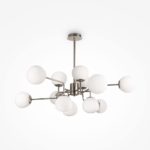 Nowoczesna lampa sufitowa Erich 12 na metalowym stelażu posiada charakterystyczne zagięte ramiona, które wraz z kloszami tworzą wyjątkową designerską konstrukcję. Model wyposażony jest w dwanaście szklanych kloszy w kształcie kuli. Cała lampa sufitowa z ramionami Erich 12 ma wysokość 134 cm i szerokość/głębokość 105.