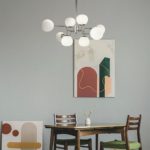 Nowoczesna lampa sufitowa Erich 8 na okrągłej podsufitce wyposażona jest w osiem kloszy, dlatego z powodzeniem zastąpić może standardowy żyrandol. Każdy z kloszy umieszczony jest na osobnym ramieniu wykonanym z metalu. Do lampy sufitowej z ramionami Erich 8 pasują żarówki z małym gwintem (E14).