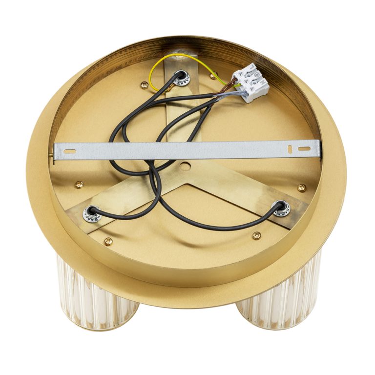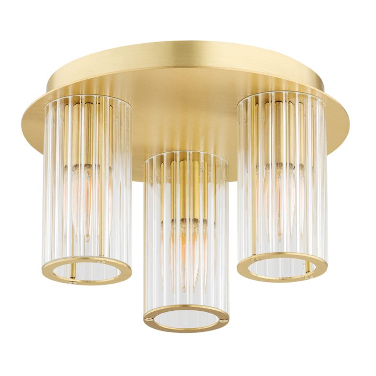Lampa do salonu Hampton 3 wyposażona jest w okrągłą podsufitkę z mosiądzu, do której zamocowane są trzy transparentnego klosze wykonane z ozdobnego szkła. Całość zachwyca elegancją – zarówno pod względem formy, jak i kolorystyki. Nowoczesna lampa sufitowa Hampton 3 do salonu przepięknie zestawia się z wnętrzami utrzymanymi w bieli ze złotymi akcentami.