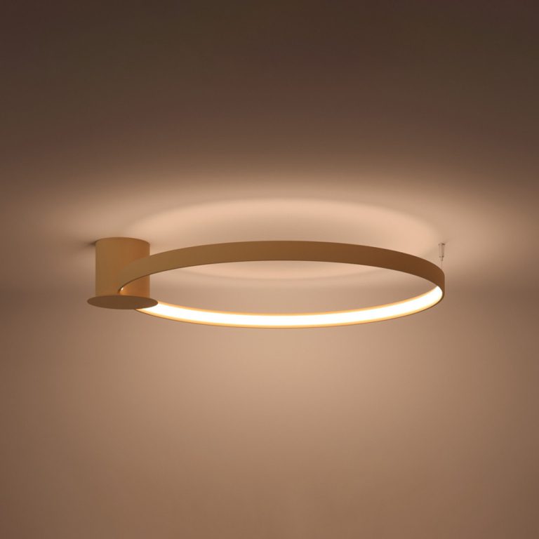 To również model, który wyposażony jest w zintegrowane oświetlenie LED – ekologiczne i emitujące światło o mocy strumienia świetlnego na poziomie aż 5520 lm! Nowoczesna lampa sufitowa LED Rio w złotym kolorze najlepiej prezentuje się we wnętrzach inspirowanych minimalizmem. Znakomicie wkomponowuje się także w aranżacje eklektyczne, które łączą styl nowoczesny i glamour.