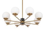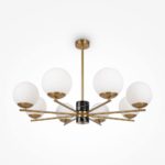 Mosiężna lampa sufitowa Marble 6 na okrągłej podsufitce wyposażona jest w wyjątkowo modne obecnie klosze w kształcie kuli. Każdy z nich ma tę samą wielkość i wykonany został z białego szkła, które perfekcyjnie rozprasza światło. Lampa mosiężna Marble 6 posiada również metalowy detal w kolorze czarnego marmuru – ten szczegół nadaje całości jeszcze bardziej stylowego wyglądu!