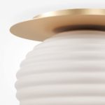 Nowoczesna lampa sufitowa Reels z mlecznym kloszem wyposażona jest w metalową podsufitkę w złotym kolorze, która idealnie komponuje się z bielą klosza. Kolorystyka ta doskonale odnajdzie się w większości aranżacji, szczególnie jeśli powtórzysz ją w innych częściach pomieszczenia.