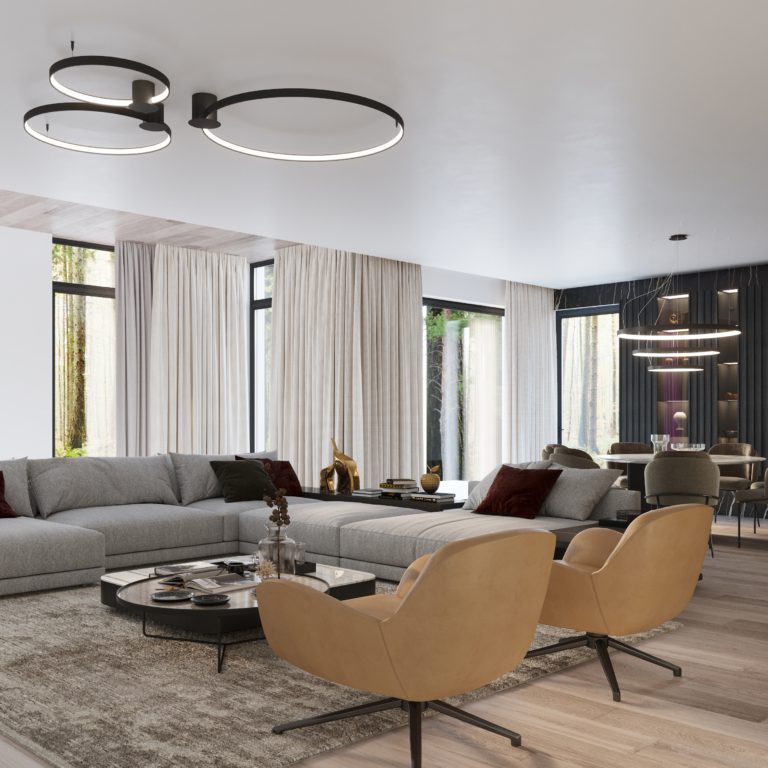 Model ten, to nietypowy rodzaj plafonu, na który składa się stalowa obręcz, w którą wbudowany jest specjalny panel świetlny LED. Okrąg ma średnice 55 cm oraz wysokość 12,5 cm. Warto również wspomnieć o mocy źródła światła, które wynosi 3870 lm. Całość prezentuje się bardzo nowocześnie, i właśnie do tego rodzaju wnętrz najbardziej będzie pasować. Minimalistyczna forma doskonale zgra się z prostymi aranżacjami, w których dekoracje ograniczone są do minimum.
