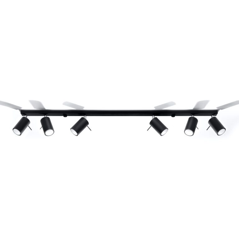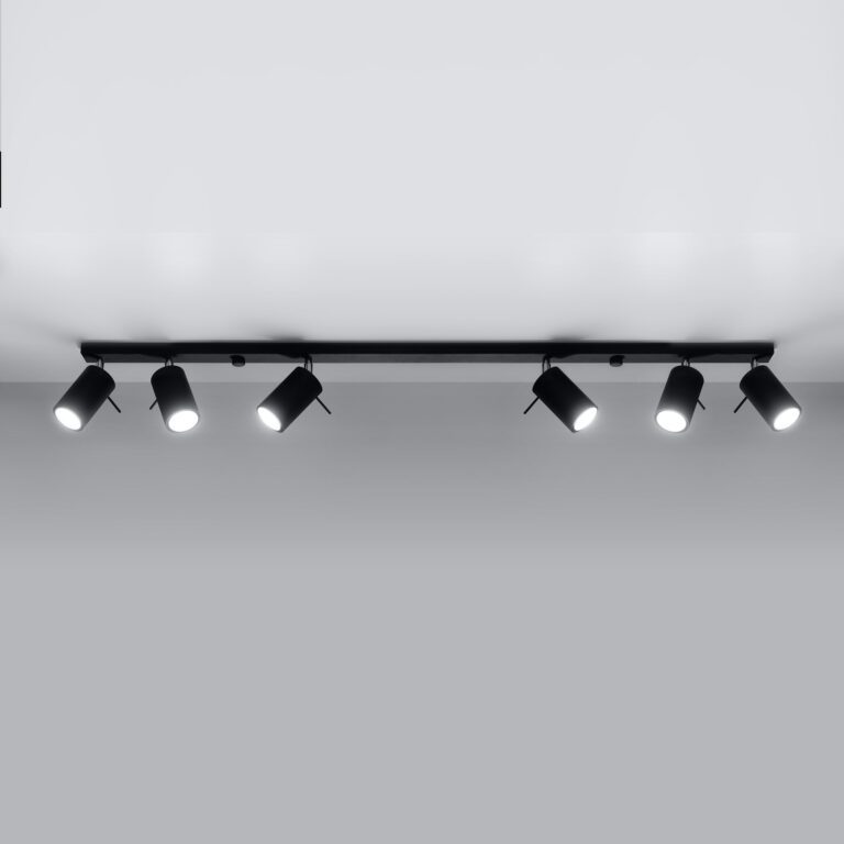 Czarna lampa z reflektorami to propozycja na oświetlenie wnętrz minimalistycznych i nowoczesnych. Świetnie wkomponuje się w pomieszczenie, w którym dominują odcienie szarości i grafitu, a także naturalne drewno oraz akcenty chłodne i chromowane. Kierując odbłyśniki w jednym, neutralnym kierunku otrzymasz światło równomiernie rozchodzące się i rozproszone. Zwracając kilka reflektorów w konkretną stronę uzyskasz świetne oświetlenie punktowe dodające blasku określonej części powierzchni.