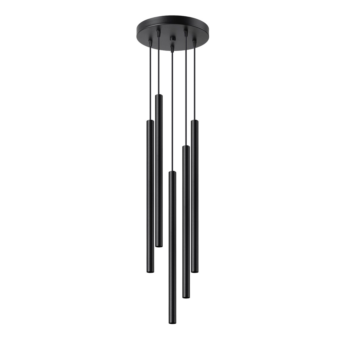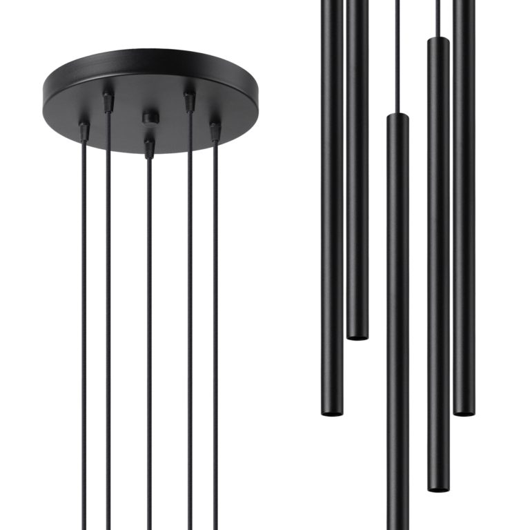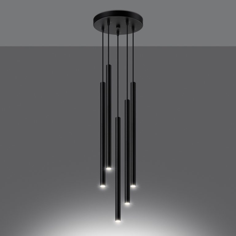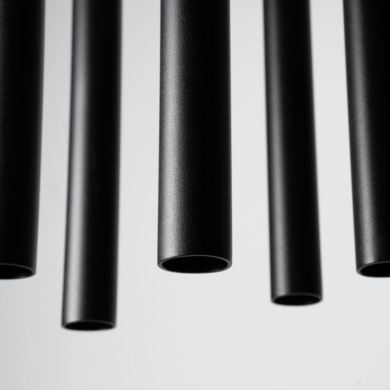 Nowoczesna lampa wisząca Arta 5 w klasycznym kolorze składa się z okrągłej podsufitki oraz pięciu podłużnych kloszy, z których każdy ma 50 cm wysokości i średnicę 2,5 cm. Poszczególne klosze warto zawiesić na różnych wysokościach tworząc kaskadową konstrukcję. Oferowany model bardzo dobrze sprawdza się w roli lampy nad stół, wyspę kuchenną, komplet wypoczynkowy, czy łóżko. Lampa kaskadowa Arta 5 w całości wykonana została z metalu i doskonale współgra nie tylko z aranżacjami nowoczesnymi, ale także loftowymi.