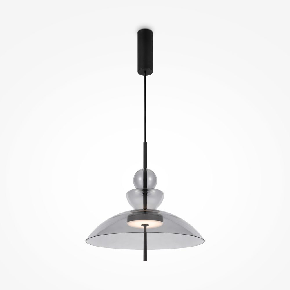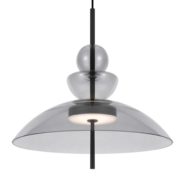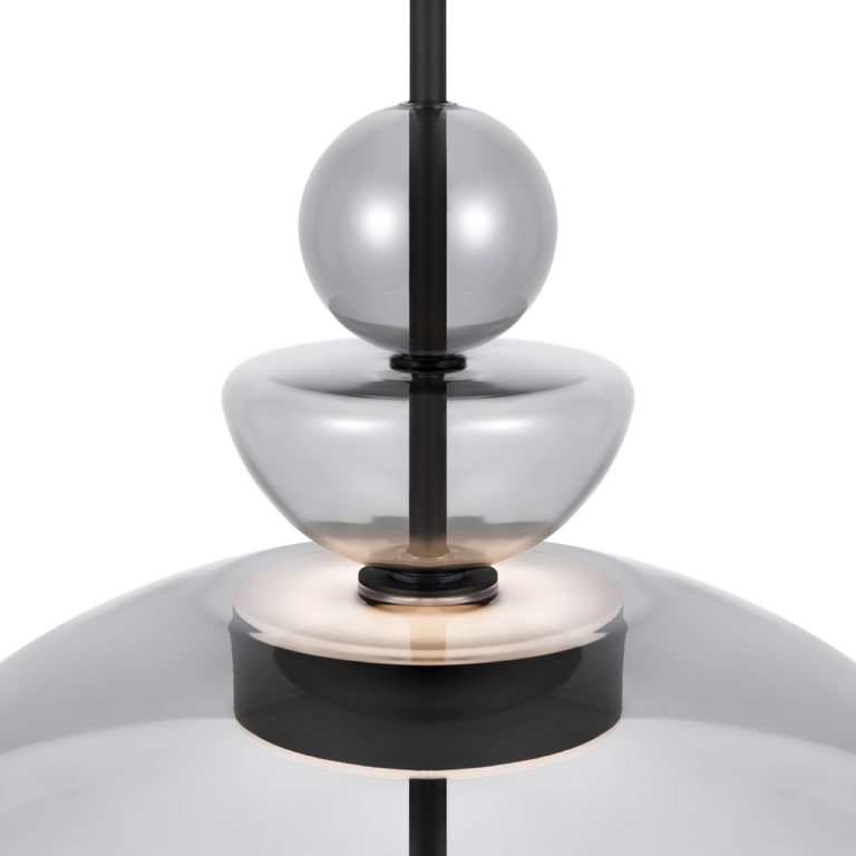 Poza czarną podsufitką z metalu, lampa nowoczesna Bangkok posiada szklany klosz w kształcie misy dodatkowymi elementami ozdobnymi. Model wyposażony jest również w długi przewód, który możesz skrócić tak, aby dopasować oświetlenie do wnętrza. Nowoczesna lampa wisząca Bangkok na czarnej podsufitce to także zintegrowanie oświetlenie LED.