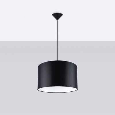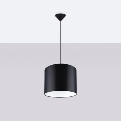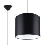 Jeśli lubisz proste formy, nowoczesna lampa wisząca Bruno z czarnym abażurem z pewnością przypadnie Ci do gustu! Oprawa wyposażona jest bowiem jedynie w podsufitkę, kabel zasilający oraz klosz z tkaniny w kształcie walca. Lampa czarna Bruno to także dwa rozmiary do wyboru: S i M, które różnią się średnicą klosza.