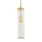 Ujmuje designerskim wyglądem i sprawia, że całe wnętrze nabiera wyjątkowości – nowoczesna lampa wisząca Hampton o prostym designie wyposażona jest w podłużny klosz wykonany z dekoracyjnego transparentnego szkła. Uzupełnieniem dla niego jest mosiężny stelaż w typowym dla tego materiału złotym kolorze.