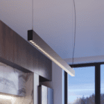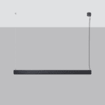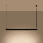 Jednym z najlepszych zastosowań dla oferowanej oprawy świetlnej jest wykorzystanie jej w roli lampy wiszącej nad wyspę kuchenną. Model ma szerokość 120 cm, dlatego pozwoli Ci podświetlić nawet długi blat. Nowoczesna lampa wisząca Soren LED umożliwia także samodzielne dopasowanie wysokości zawieszenia, przez co cała oprawa staje się jeszcze bardziej funkcjonalna. Prezentowany model posiada wbudowane oświetlenie LED o dwóch barwach światła – ciepłej i neutralnej. Ponadto lampę wykonano z wytrzymałego metalu.