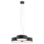 Przyglądając się budowie, od razu dostrzeżemy nietypową formę polecanej oprawy. Lampa wisząca do salonu Darling 3 wyposażona jest w trzy okrągłe i płaskie klosze, które umieszczone zostały na jednej płaszczyźnie. Zawieszenie i podsufitka to jedynie niezbędny dodatek, który zapewnia całej konstrukcji stabilność. Nowoczesna lampa wisząca z okrągłymi kloszami Darling 3 umożliwia regulację jej długości, oprawa może mieć od 30 do 90,5 cm wysokości.
