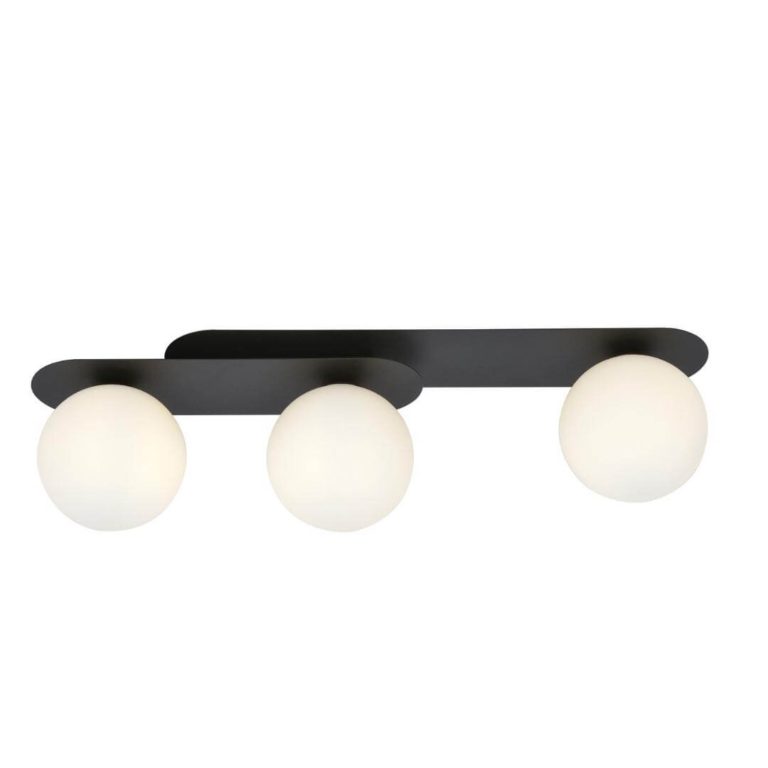 Poznając ten wyjątkowo uniwersalny model oświetlenia warto zacząć od samej jego budowy. Lampa sufitowa Rahim 3 wyposażona jest w oryginalną podsufitkę, która składa się z dwóch nakładających się na siebie części. Ten nietypowy stelaż wykonany został ze stali, dlatego stanowi solidną podstawę dla aż trzech źródeł światła. Każde z nich zamknięte jest w piękne szklanej kuli, która cudownie rozprasza światło po całej przestrzeni.