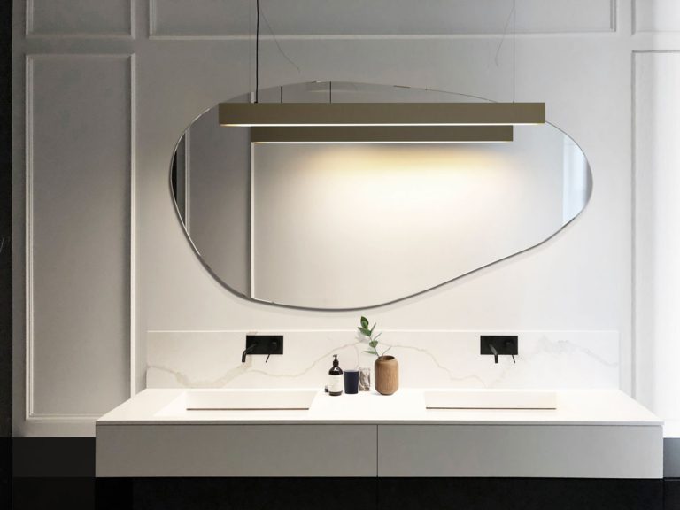 Wodoodporne lustro do łazienki na złotej ramie Ambient