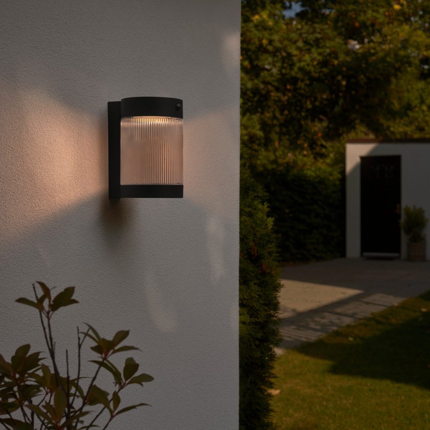 Nowoczesny kinkiet elewacyjny Coupar z czujnikiem ruchu