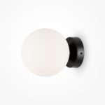 Nowoczesny kinkiet ścienny Basic form na czarnym stelażu wyposażony jest w niezwykle modny szklany klosz w kształcie kuli, który ma uniwersalny biały kolor. Model dostępny jest również w dwóch rozmiarach (S i M). Prosty design sprawia, że kinkiet z czarnym stelażem pasuje nie tylko do stricte nowoczesnych aranżacji.