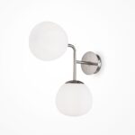Poza metalowym stelażem, kinkiet nowoczesny Erich 2 wyposażony jest w białe szklane klosze o modnym kulistym kształcie. Biel kloszy doskonale współgra z niklowanym odcieniem stelaża. Ponadto nowoczesny kinkiet ścienny Erich 2 na metalowym stelażu z łatwością zestawia się z innymi kolorami.