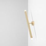 W naszym sklepie internetowym stawiamy, między innymi, na wysoką jakość produktów i nieprzeciętny design. Taka jest też lampa ścienna Fabius L, która została wykonana z metalu w mosiężnej powłoce. Stelaż jest dość wąski (8 cm), ale bardzo długi – aż na 100 cm! Na jego końcach umieszczono po jednym wejściu na źródło światła. Ten bardzo minimalistyczny design ożywia mosiężny odcień stelaża, który dodaje szyku całości, a także pięknie odbija światło.