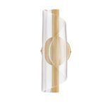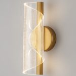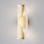 Nowoczesny kinkiet ścienny Huaral w złotym kolorze wyróżnia się niezwykłym transparentnym, falistym kloszem, który nie tylko nadaje oprawie designerskiego wyglądu, ale i subtelnie rozprasza światło.