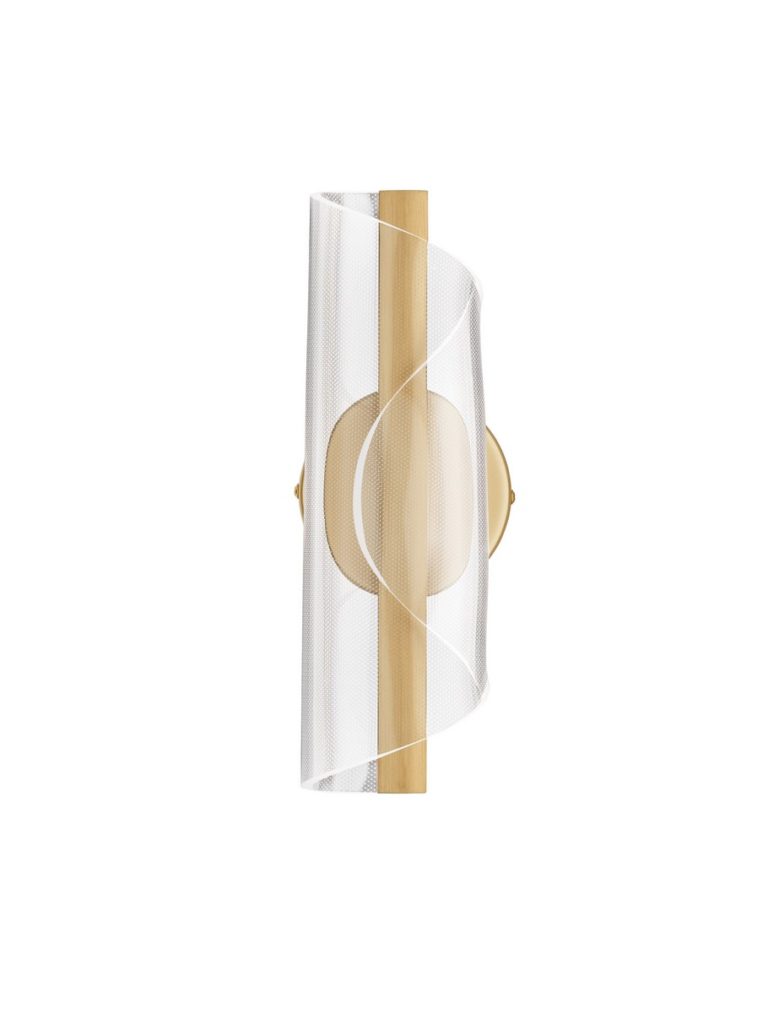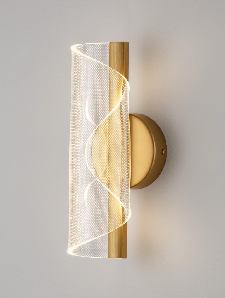 Nowoczesny kinkiet ścienny Huaral w złotym kolorze wyróżnia się niezwykłym transparentnym, falistym kloszem, który nie tylko nadaje oprawie designerskiego wyglądu, ale i subtelnie rozprasza światło.