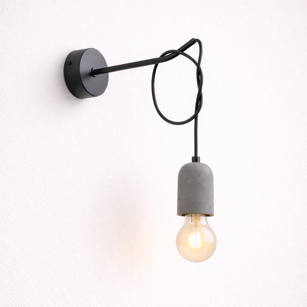 Kinkiet nowoczesny z betonowym kloszem Thomas wyjątkowo dobrze komponuje się z współczesnymi chłodnymi aranżacjami inspirowanymi stylem minimalistycznym i industrialnym. Całkowita wysokość nowoczesnego kinkietu ściennego Thomas na czarnym stelażu wynosi 50 cm. Zwis możesz jednak skrócić i dopasować do specyfiki wnętrza i swoich upodobań.