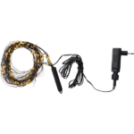 Nowoczesny łańcuch LED z czarnymi drucikami wyposażony jest w kabel zasilający o długości 3 m. Światełka przystosowane są do użytku wewnętrznego.
