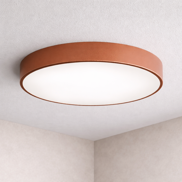 Nowatorska konstrukcja plafonu minimalizuje ilość światła, które wydostaje się spod lampy pozostawiając widoczną poświatę na suficie.