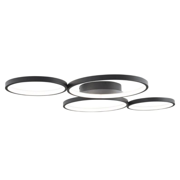 Polecana przez nasz sklep lampa sufitowa Velvet LED 4 przykuwa do siebie uwagę nowoczesnym designem. Oferowany model wykonany został z aluminium oraz silikonu i składa się z czterech połączonych ze sobą paneli świetlnych w formie okręgów o różnej wielkości. Dwa z nich mają średnicę 25 cm, a dwa 34 cm. Te oryginalne klosze tworzą razem wyjątkową kompozycję o bardzo designerskim charakterze. Całe oświetlenie ma szerokość 65 cm i długość aż 95 cm. Jeśli chodzi o wysokość, jest ona stosunkowo niewielka i wynosi 6 cm.