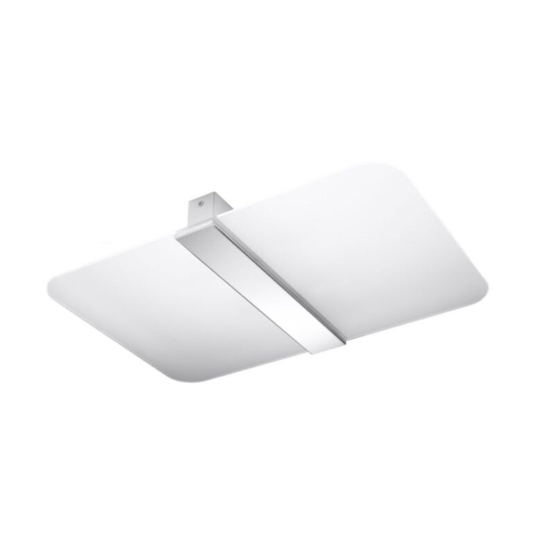 Nowoczesny plafon Vidro z białym kloszem w kształcie prostokąta świetnie rozprasza światło, a jednocześnie chroni wzrok przed jego nadmierną intensywnością. Jest to model przystosowany do różnych rodzajów oświetlenie, w tym do charakteryzujących się energooszczędnością żarówek LED. Geometryczny plafon Vidro przeznaczony jest do dwóch źródeł światła G9.
