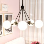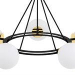 Oprócz stylowej formy i solidnych materiałów, nowoczesny żyrandol Amalfi 5 ze szklanymi kloszami ujmuje również klasycznymi barwami: czernią, bielą i akcentami w odcieniu mosiądzu. Wszystkie te kolory nie tylko doskonale ze sobą harmonizują, ale także bardzo dobrze dają się aranżować, zarówno z cieplejszymi, jak i zimniejszymi odcieniami, stonowanymi i intensywnymi. Metalowa lampa sufitowa z kulistymi kloszami ze szkła pasuje do nowoczesnego i klasycznego wystroju.