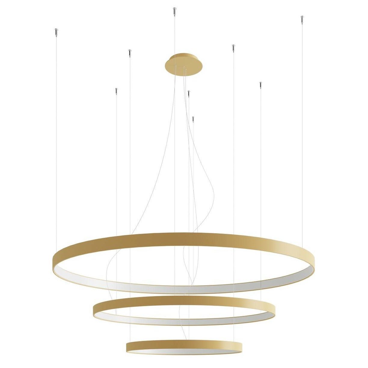 Na wyjątkową estetykę nowoczesnego żyrandola LED RIO 3 składa się również klasyczna złota kolorystyka, która sprawia, że cała aranżacja nabiera elegancji oraz ujmującego blasku. Metalowa lampa wisząca do salonu RIO 3 doskonale komponuje się nie tylko z wystrojem w stylu nowoczesnym, ale także glamour, czy loftowym. Dodatkową jej zaletą jest również możliwość wyboru oprawy o konkretnej barwie światła: ciepłej 3000 K lub neutralnej 4000 K.